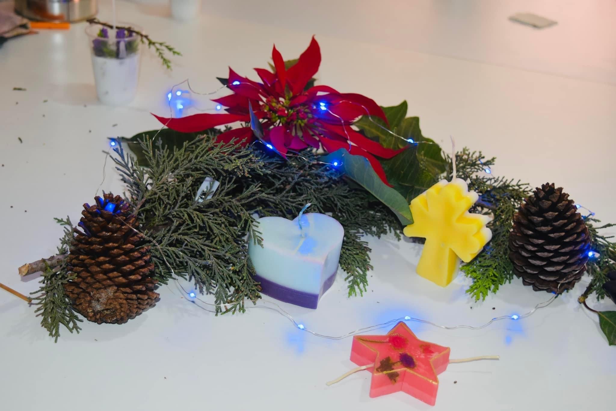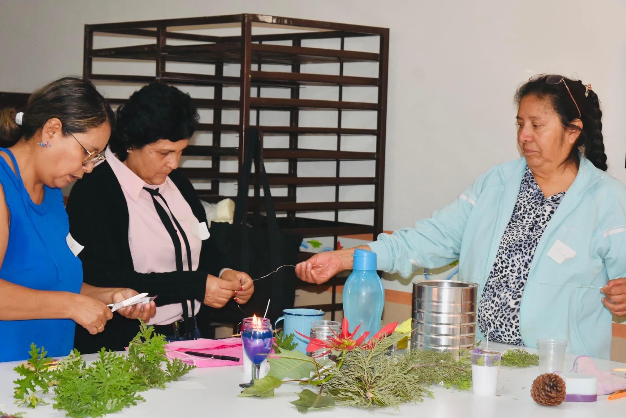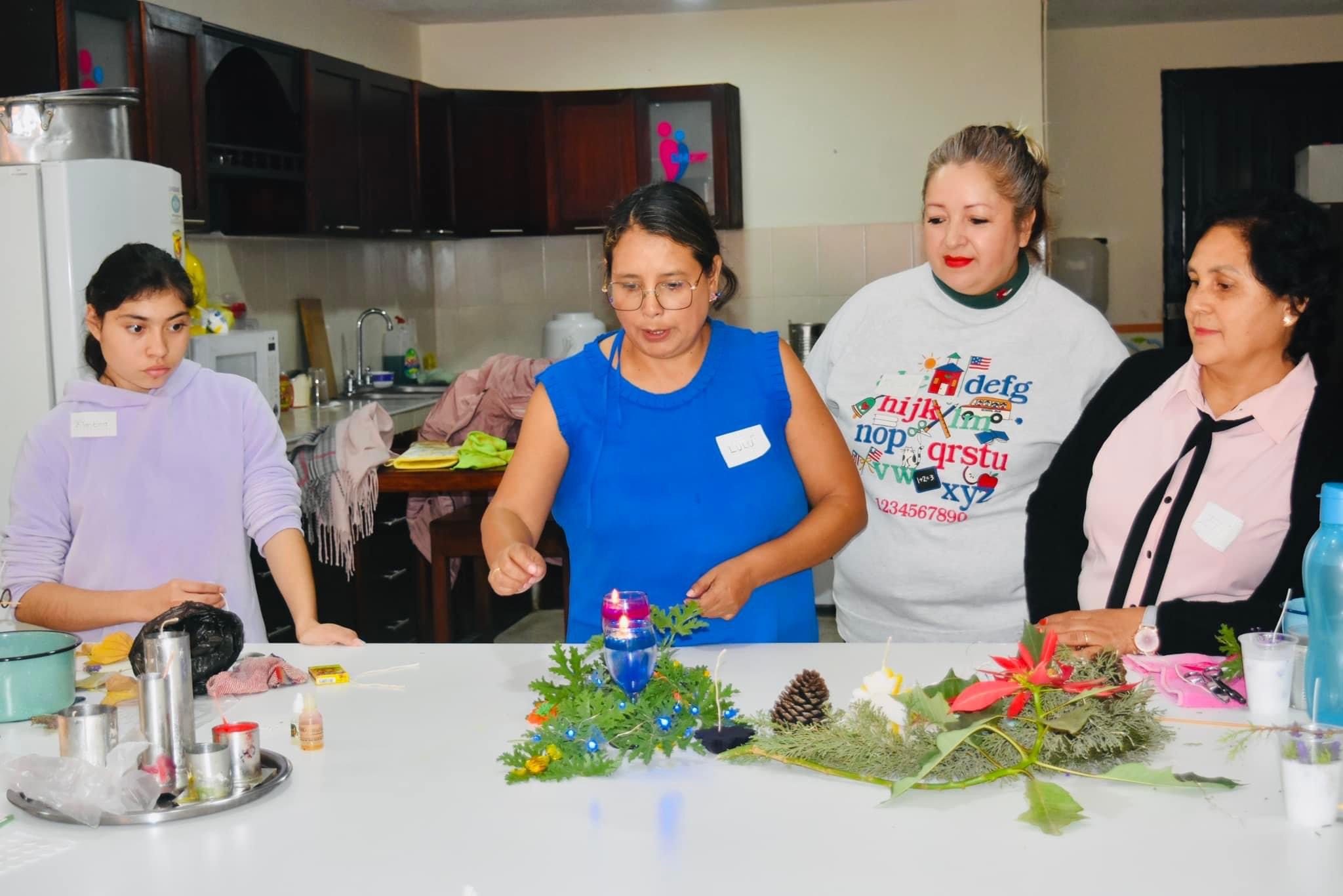 Como parte de las actividades dentro del taller de elaboración de Velas Decorativas, las participantes aprendieron a hacer arreglos navideños para centros y caminos de mesa.