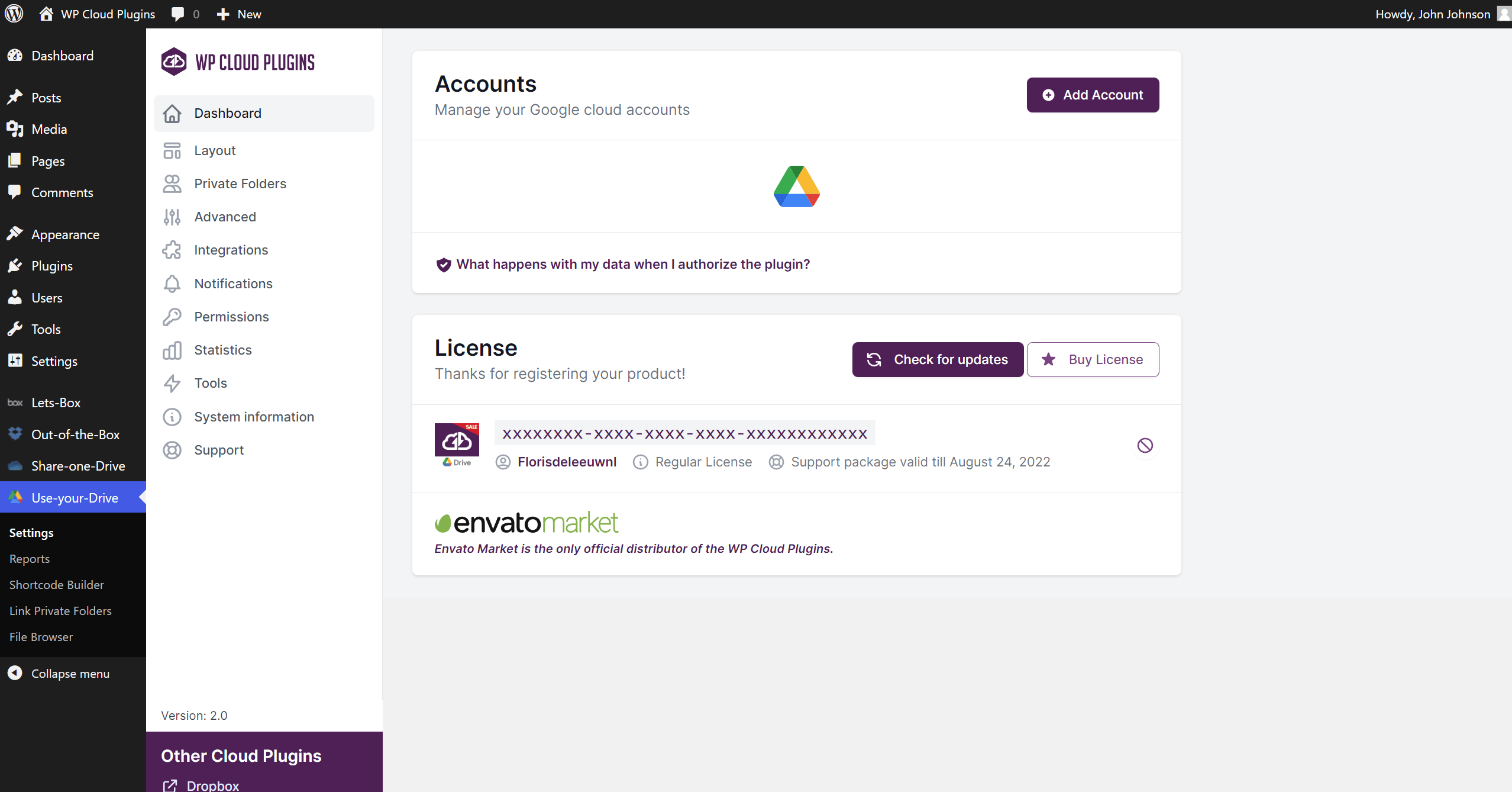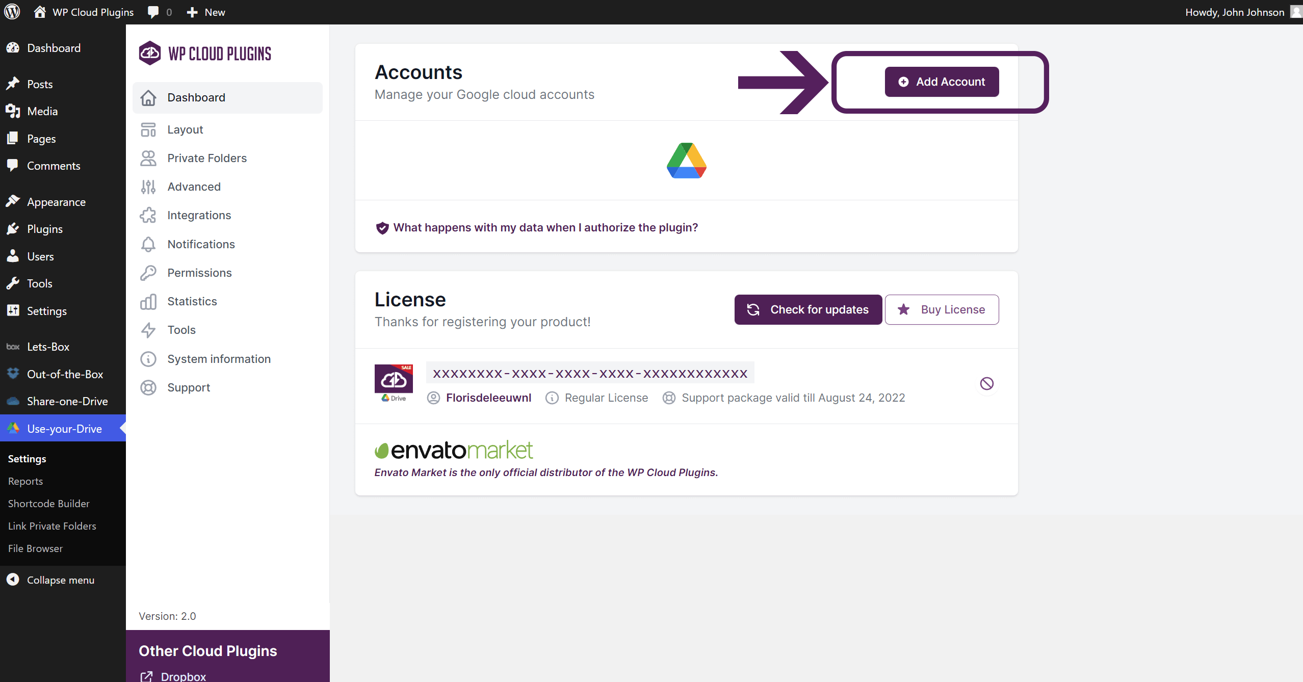 plugin settings and allows you to have direct access to the latest updates and to get support. In