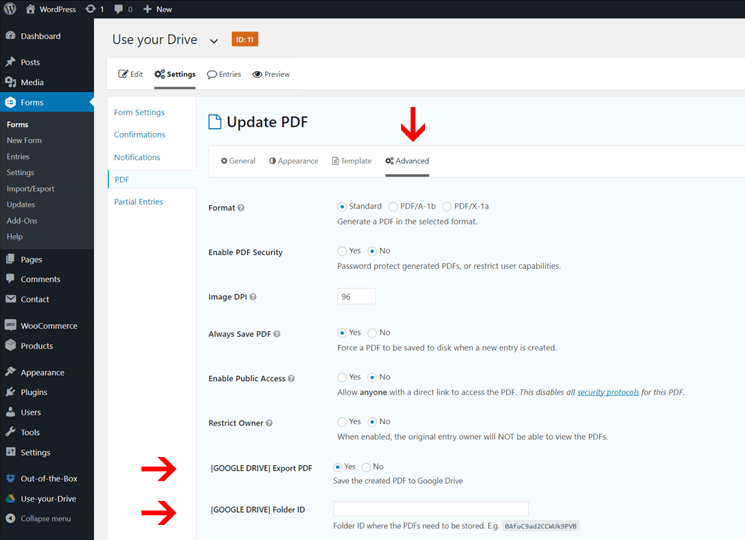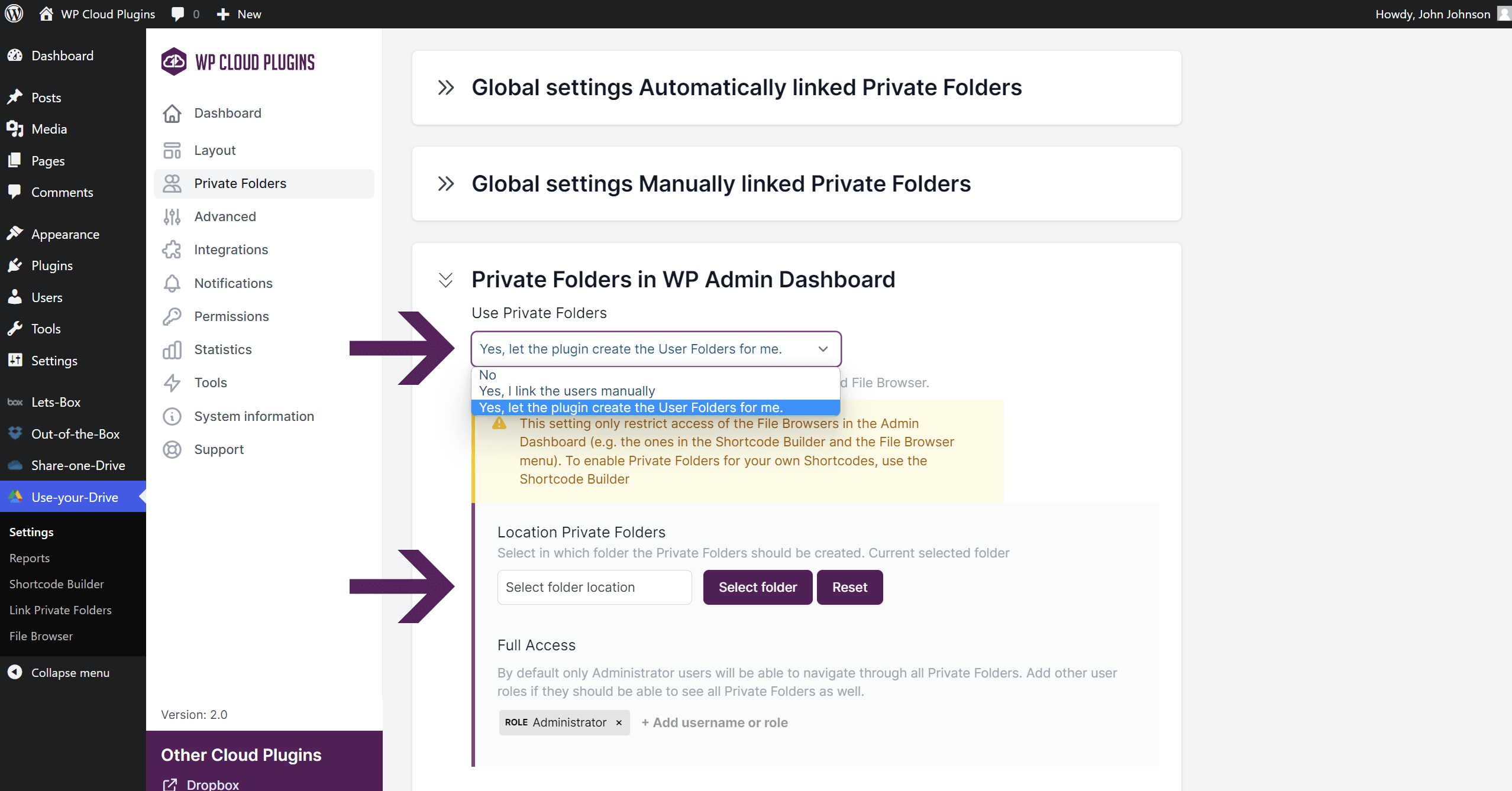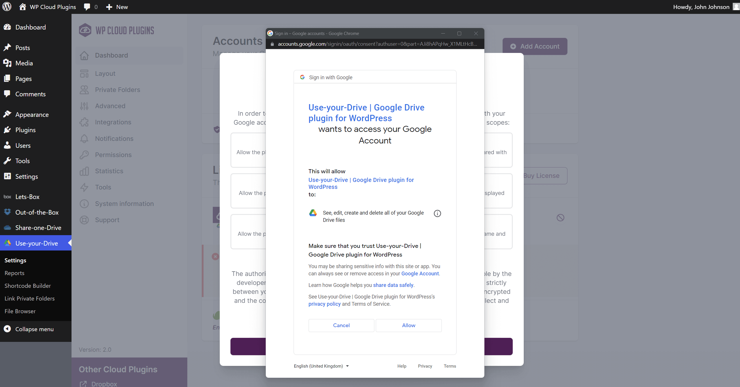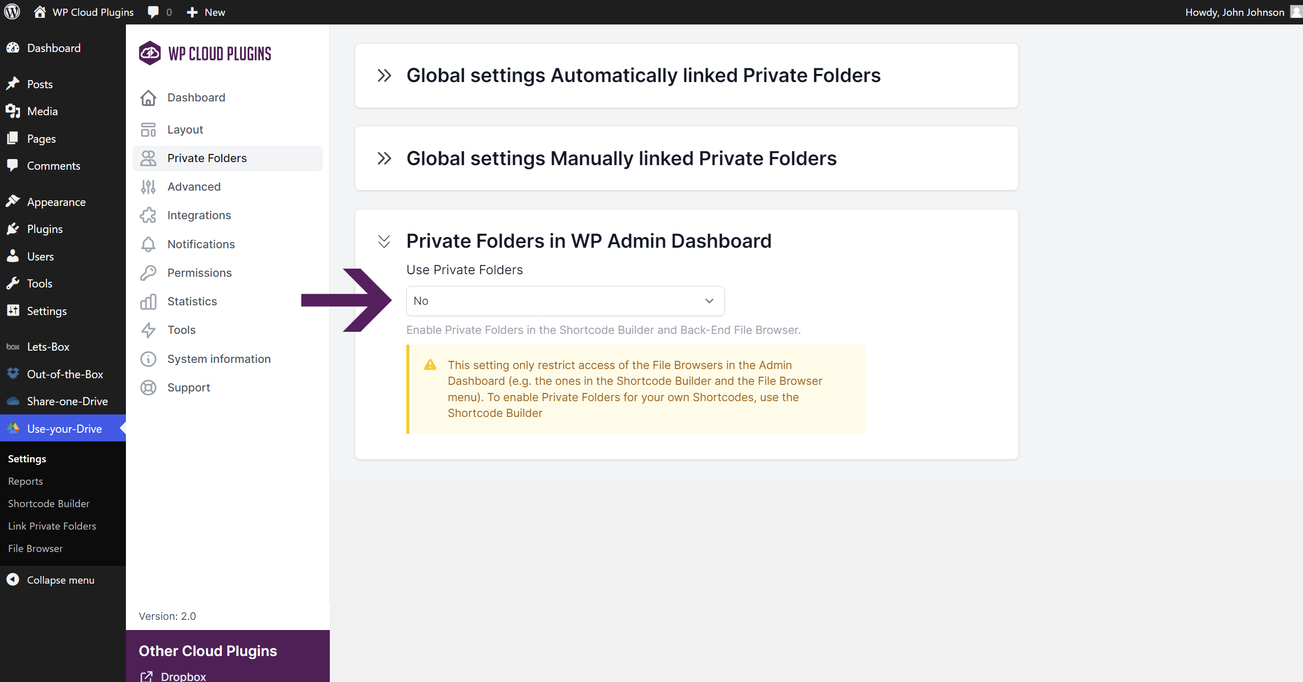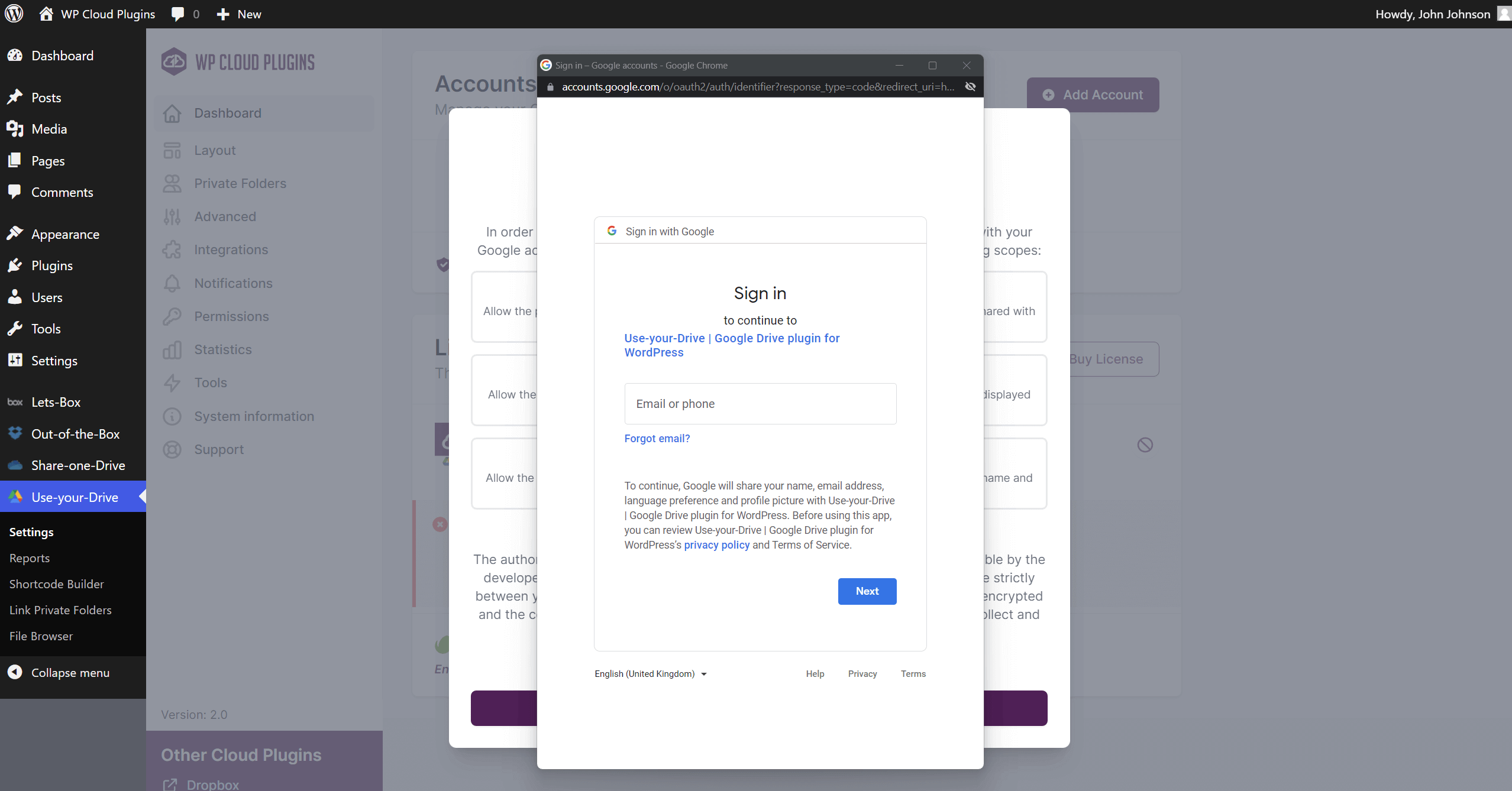 - Go to [Use-your-Drive] -> [Settings] in the WordPress Admin Dashboard on your website